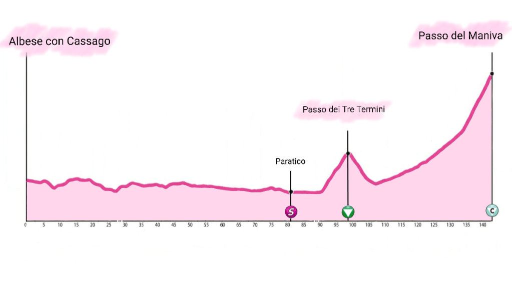Tappa 3: Albese con Cassano-Passo del Maniva, 143 Km. Arrivo in salita con la Cima Coppi del Giro Next Gen 2025. È possibile aspettarsi l’arrivo di una fuga o di un corridore in solitaria, a seconda di come verrà presa la salita finale.