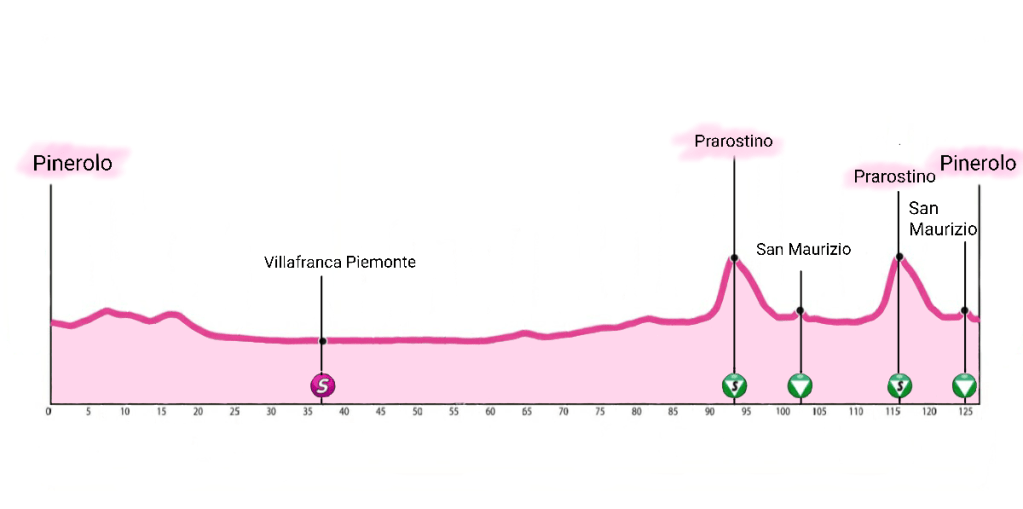 Tappa 8: Pinerolo-Pinerolo, 141 Km. Tappa mista che in caso di distacchi molto ridotti potrebbe essere teatro di un ultimo tentativo d’attacco. Sarà fondamentale prestare attenzione al muro in pavé posto a pochi chilometri dall’arrivo per evitare incidenti all’ultimo momento.